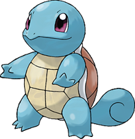 Squirtle is a small, light-blue Pokémon with an appearance similar to a turtle. With its aerodynamic shape and grooved surface, Squirtle's shell helps it wade through the water very quickly. It also offers protection in battle. Like turtles, Squirtle has a shell that covers its body with holes that allow its limbs, tail, and head to be exposed. Unlike a turtle, Squirtle is ordinarily bipedal.